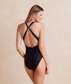 The Ring Halter Plunge One-Piece – Floral Splash In Lagoon & White Sand