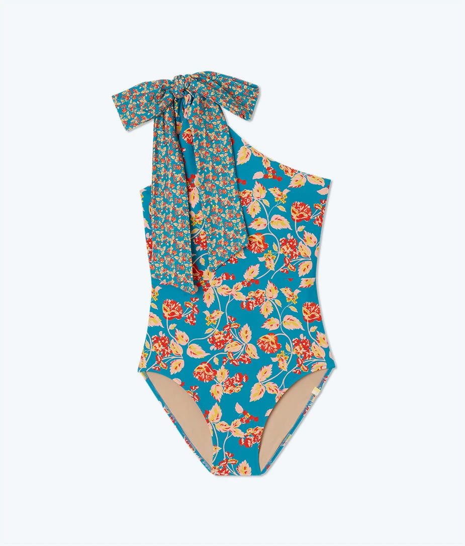 The Bow-Shoulder Ruched Sidestroke – Terrace Floral