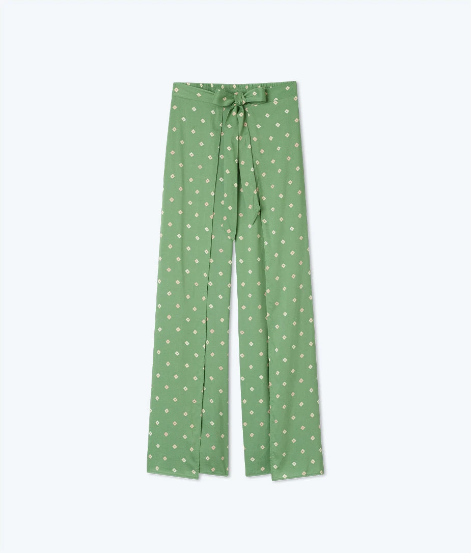 The Easy Breezy Eco Voile Wrap Pant – Diamond Dot In Seagreen & White Sand