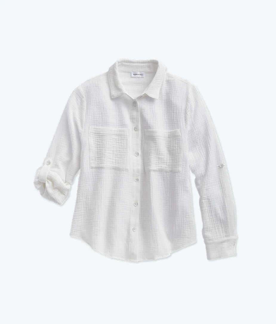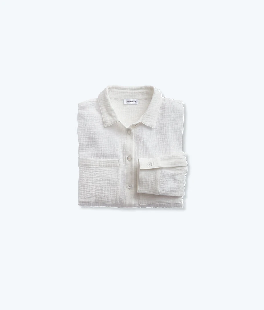 This travel-inspired style brings the vacation vibes, whether you’re heading on your next adventure or daydreaming of one. Crafted from our soft organic cotton gauze, it’s finished with front pockets and roll-tab sleeves for the perfect mix of fashion and function. Bonus styling tip: this button-down shirt pairs just as well with jeans as it does with your favorite swimsuit.