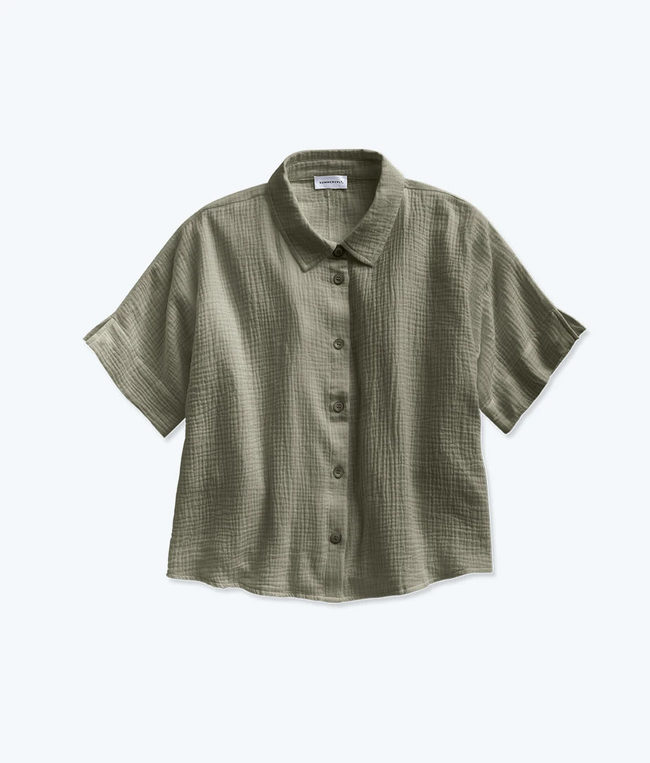 A lightened-up take on an everyday favorite. Crafted from our soft organic cotton gauze, this button-down top combines classic tailoring with cool-girl vibes for a look that can take you anywhere. Bonus styling tip: pairs just as well with jeans as it does with your favorite swimsuit.