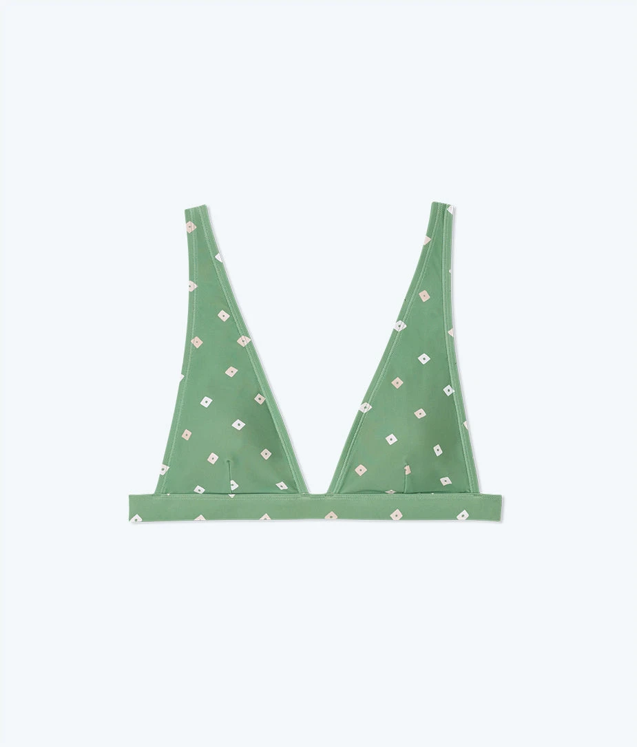 The Plunge Bikini Top – Diamond Dot In Seagreen & White Sand