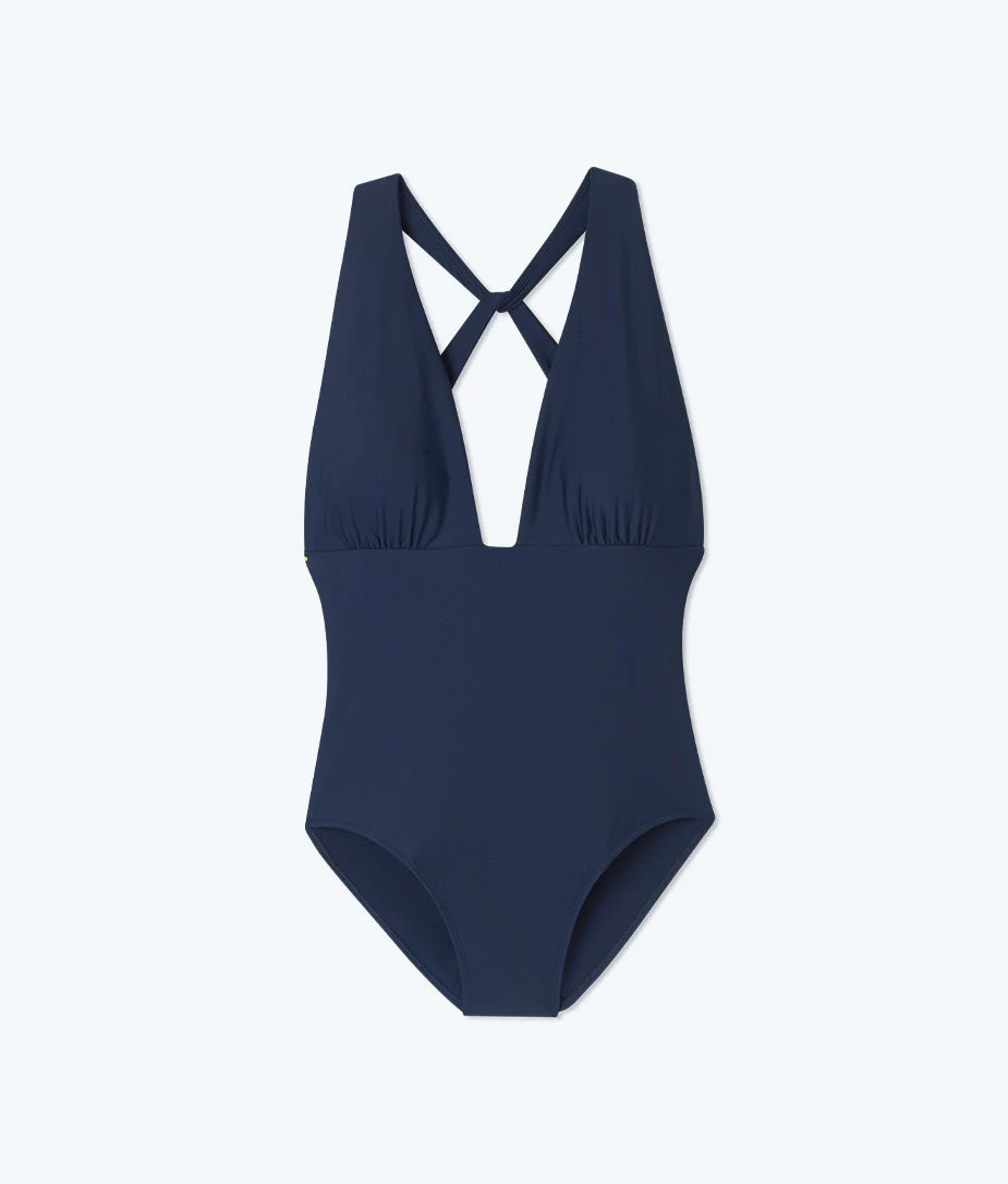 Our take on this classic one-piece style comes with all the bells and whistles. (Woot woot.) Where most plunge-neck suits offer a pesky halter, ours is built with criss cross back straps that can’t come undone, so you can splash around in the waves without worry.