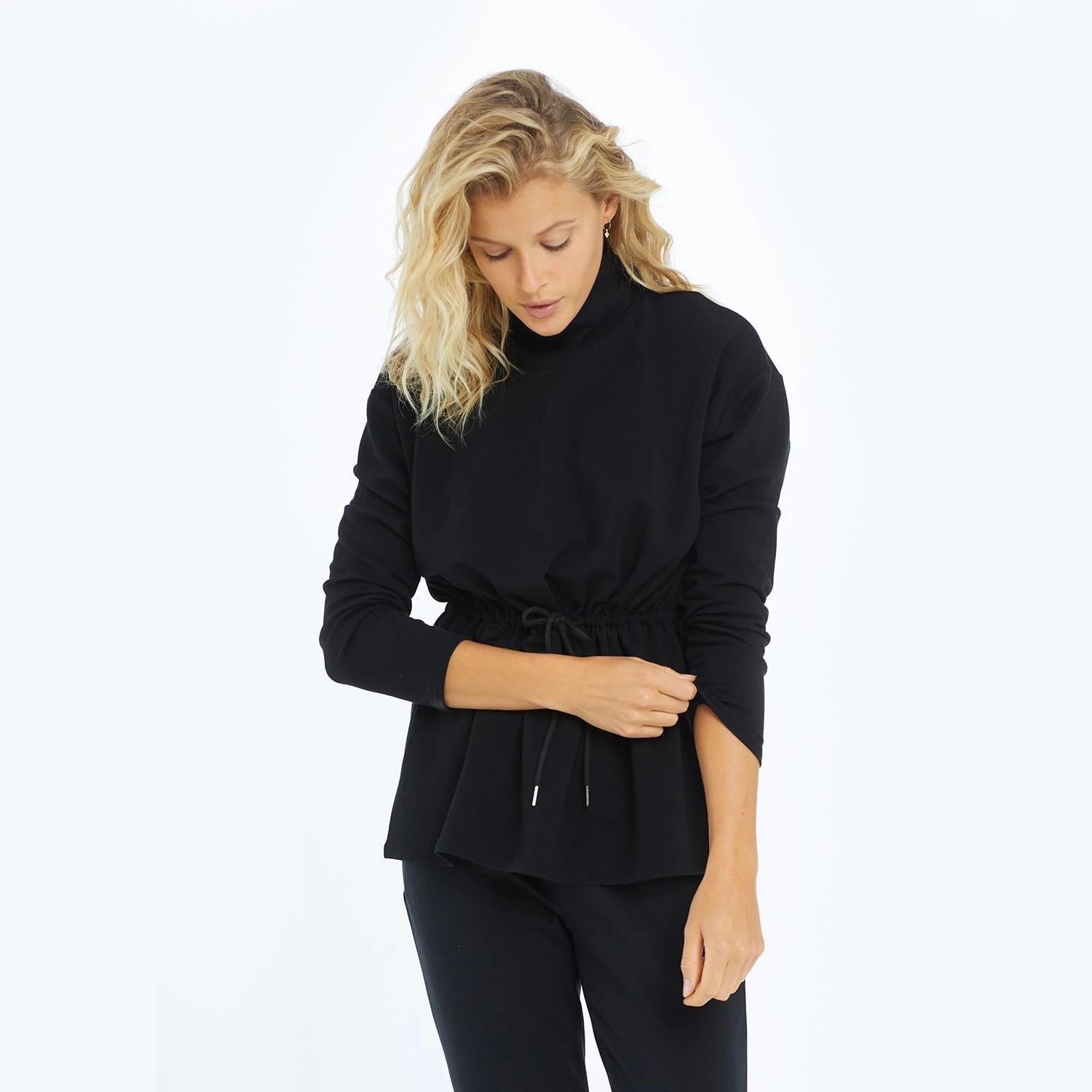Get ready to fall in love with this layering essential! This pullover in our Softest French Terry fabric is made from eco-friendly TENCEL™. It features a stylish funnel neck and a cinch tie waist that pulls the whole look together, while also keeping comfort top of mind. The high/low hem is ideal for a little extra butt coverage in the back. From Zoom meetings to endless errands to lounging on the weekend, this is the piece that’s got you covered.