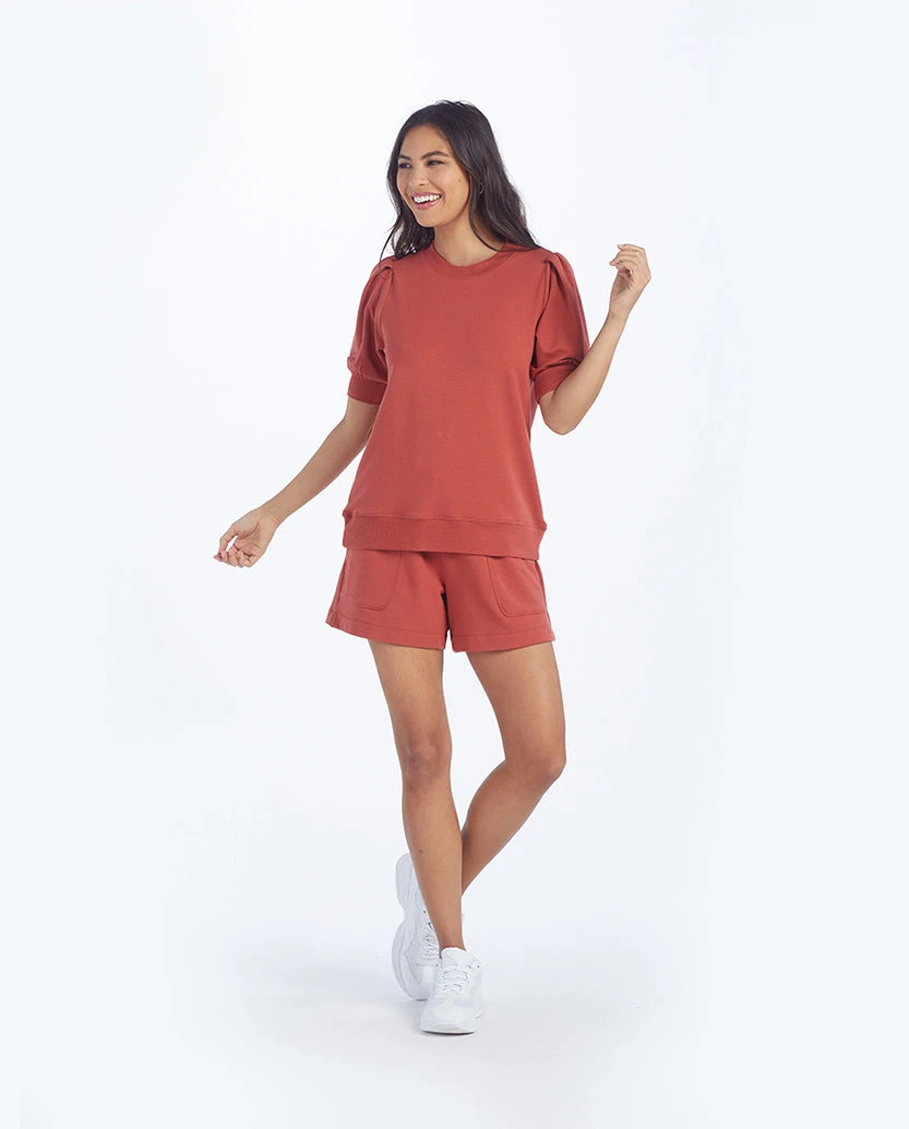 The Softest French Terry Puff Short Sleeve Top – Terracotta