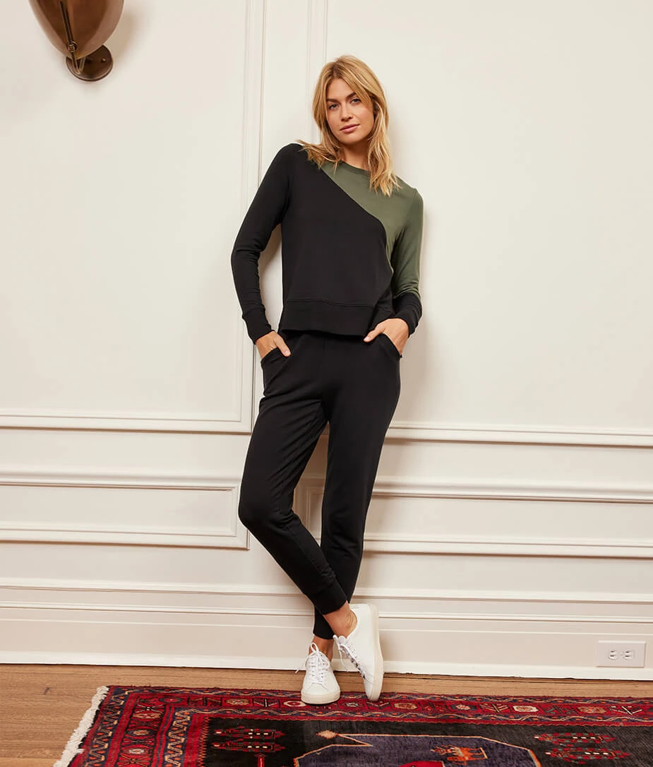 Imagine your best, worn-in t-shirt had a love child with a cozy blanket. That’s the next-level comfort of our Softest French Terry fabric, now made in eco-friendly TENCEL™. Finished with our signature colorblocking and clean, polished lines, this is destined to be your go-to pullover. Pair this beauty with its bestie, The Softest French Terry Jogger, for a matching set that’s sure to become your new uniform.