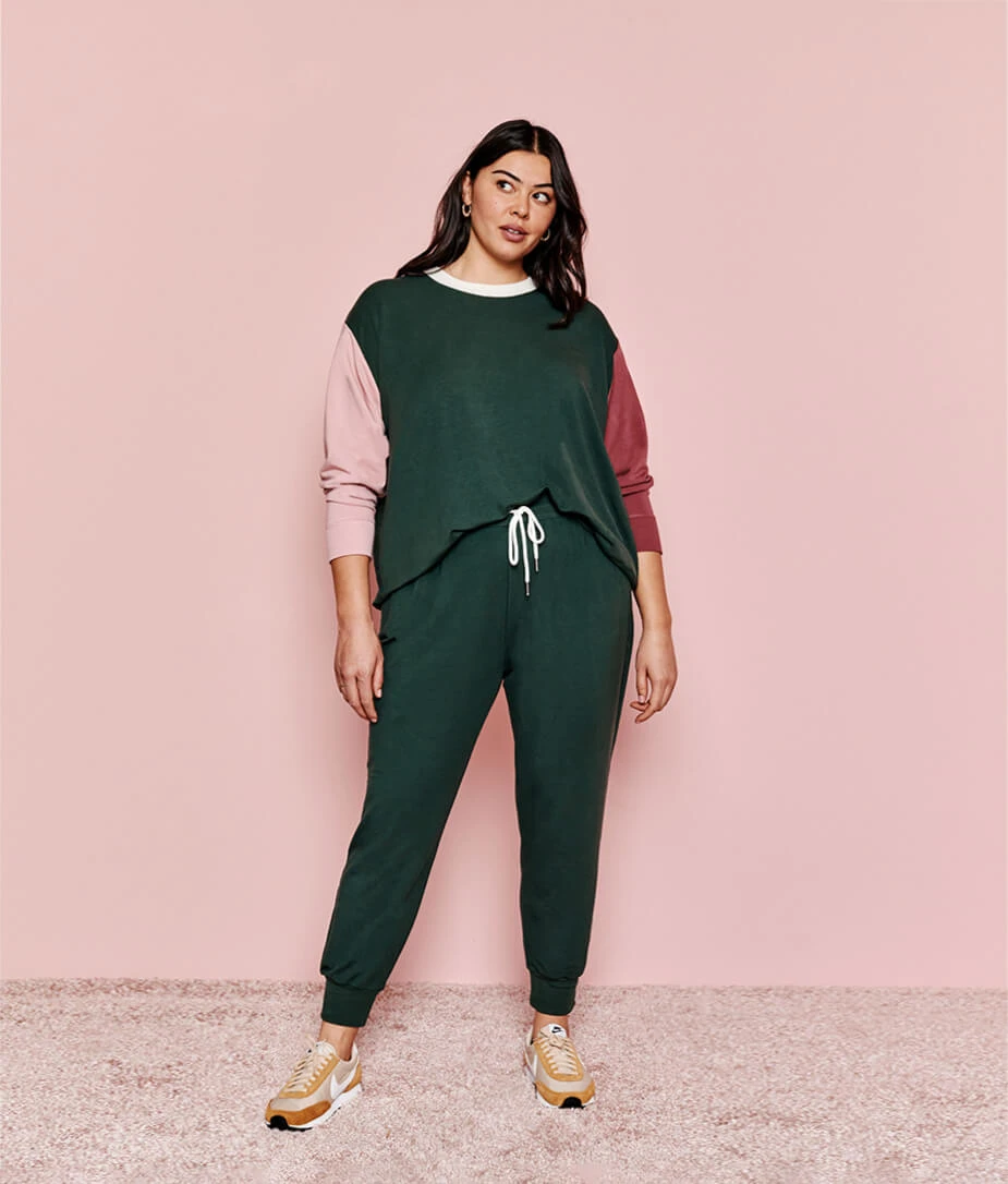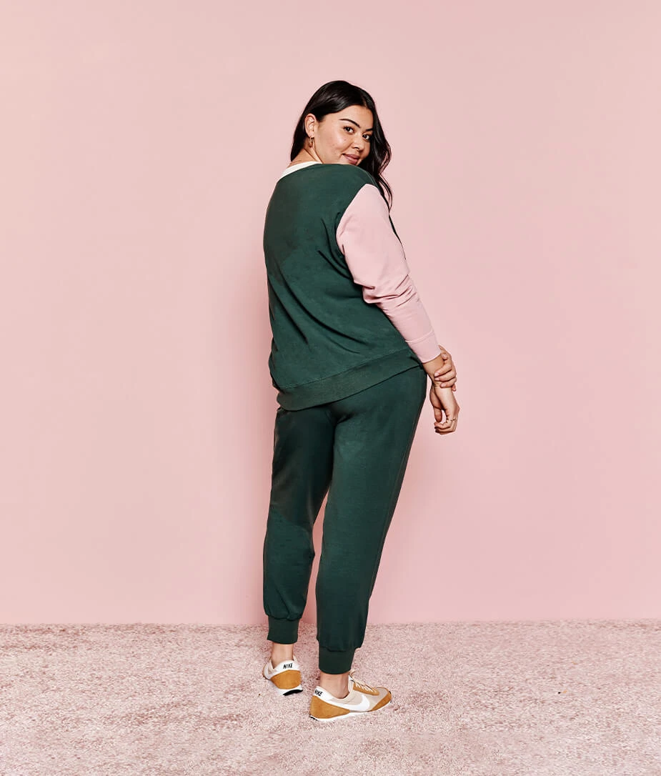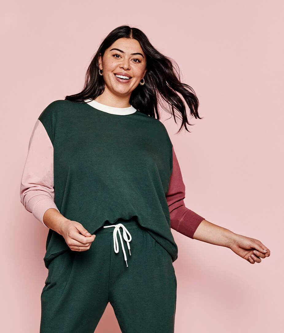 Imagine your best, worn-in t-shirt had a love child with a cozy blanket. That’s the next-level comfort of our soft & eco-friendly French Terry fabric. With a relaxed fit and eye-catching colorblocking, this cozy crewneck is destined to be your go-to pullover. Pair it with its bestie, The Softest French Terry Jogger, for the perfect set.