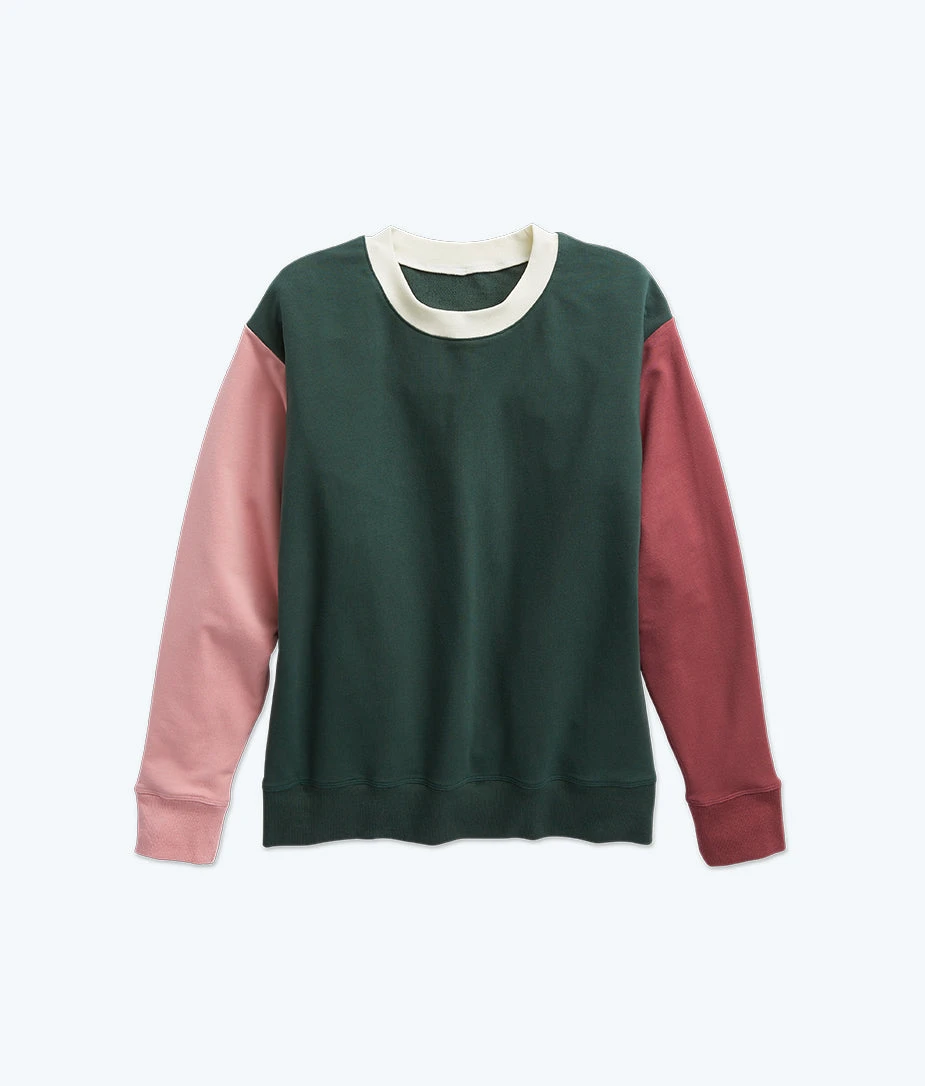 The Softest French Terry Relaxed Colorblock Crew – Eden & Shell & Rosewood