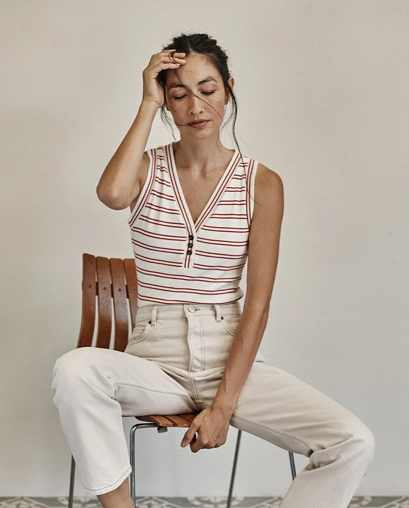 The Softest Ribbed Henley Tank – White Sand & Berry Stripe
