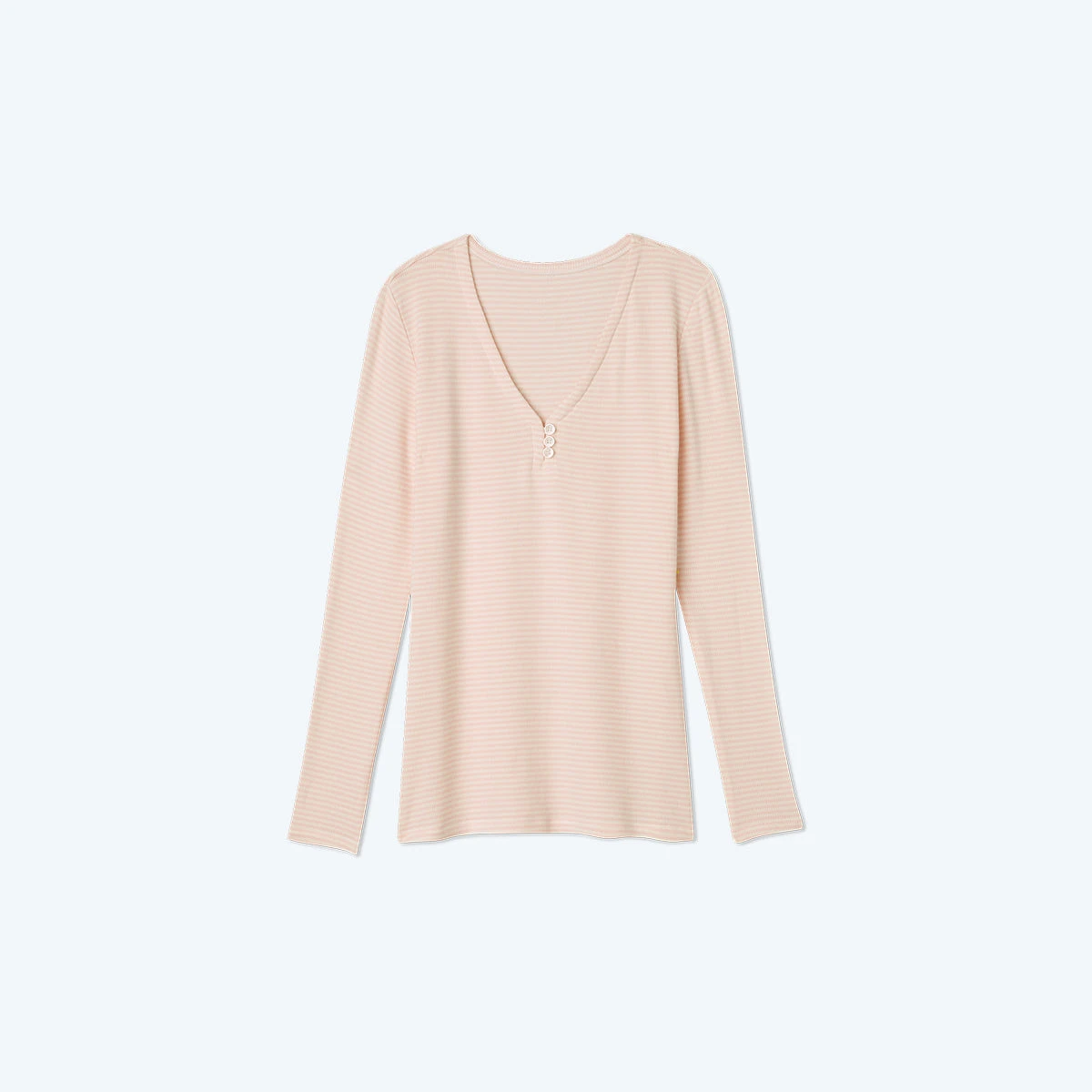 The Softest Ribbed Long Sleeve Henley – Blush & White Sand Stripe
