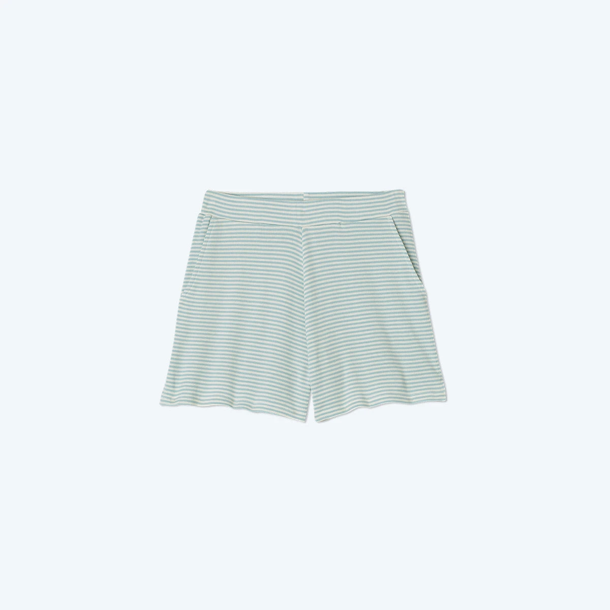 The Softest Ribbed Lounge Shorts – Sage & White Sand Stripe